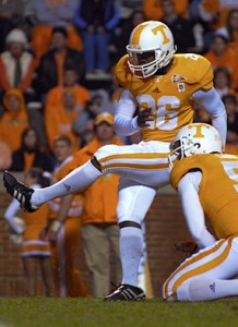Brodus was told that Rhome pulled a muscle during pregame warm ups. That meant the Volunteers had a decision to make: a third string, walk-on, freshmen kicker…or no kicker. For head coach Derek Dooley, the decision was a no-brainer.